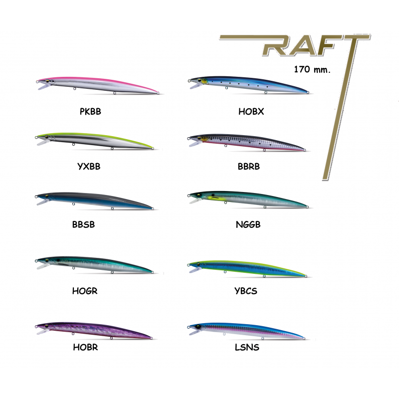 Artificiale dedicato allo spinning in mare dalla forma affusolata capace di ipnotizzare le prede con il suo nuoto sinuoso. Caratterizzato dall'innovativo sistema a scorrimento magnetico che controlla il bilanciamento dei pesi, il nuovo RAFT è capace di offrire elevate prestazioni in fase di lancio, favorendo la lunga distanza.